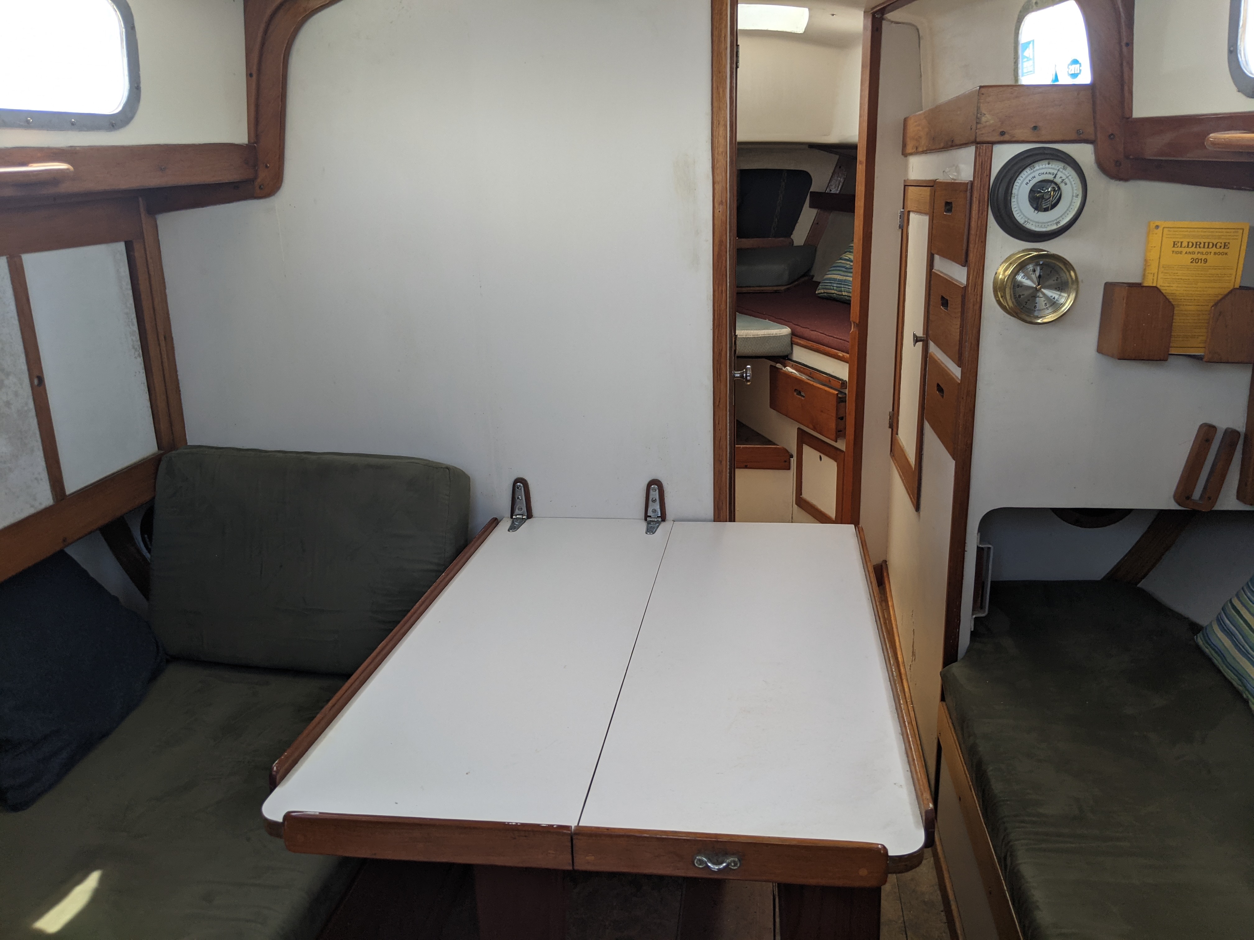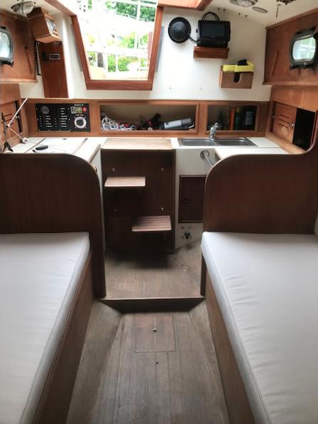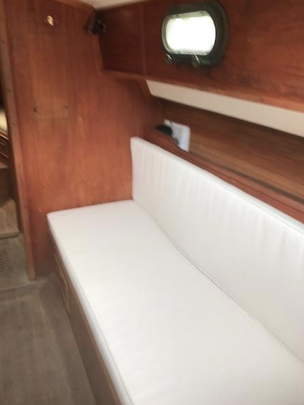She is powered by a Beta 14 diesel which is in good shape and has been well maintained. Electronics include a chart plotter, depth sounder, and both mast-mounted and hand-held VHF. The boat was re-wired by an electrical engineer. I have a 30 lb Rocna anchor that has not yet been mounted, and solar panels with a controller that also have yet to be mounted. The cabin settee cushions are newly re-covered as of the 2020 season. There are many other related items.